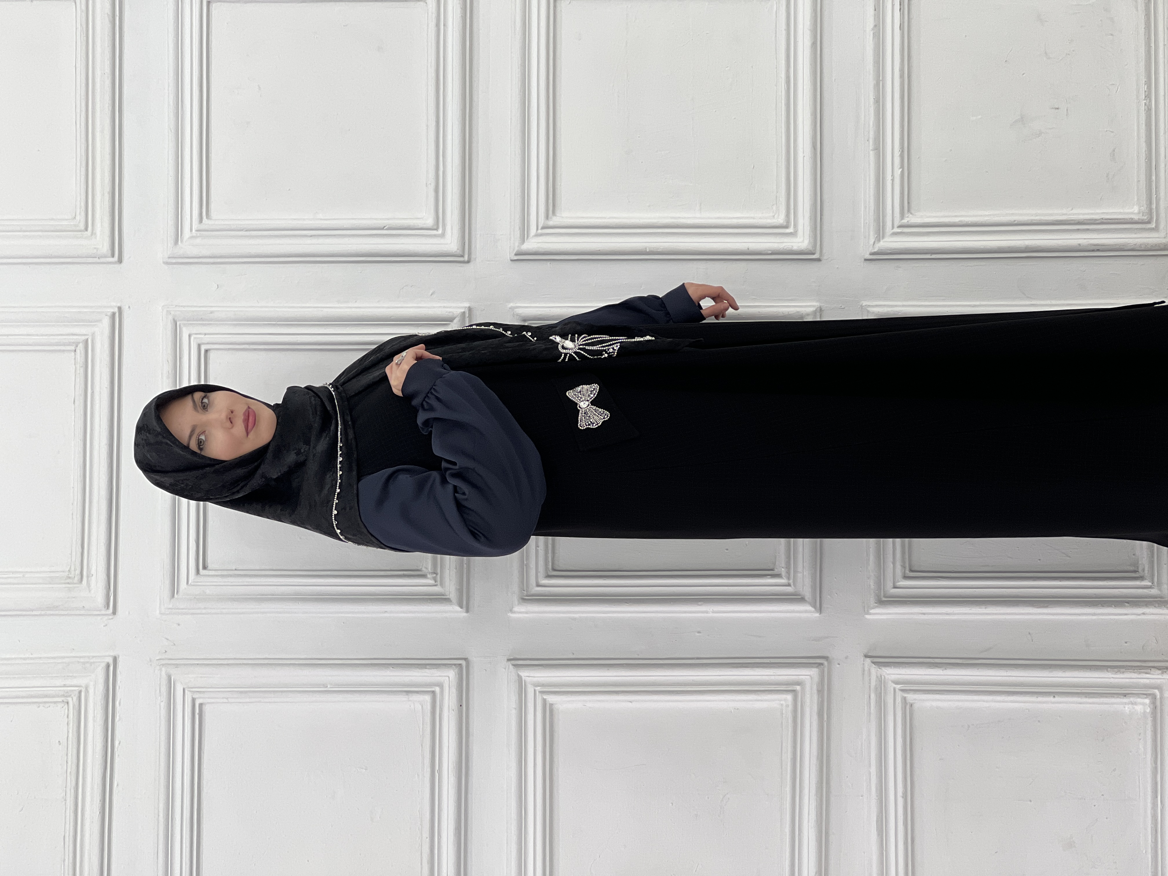 شومیز ساده سرمه ای ساتن